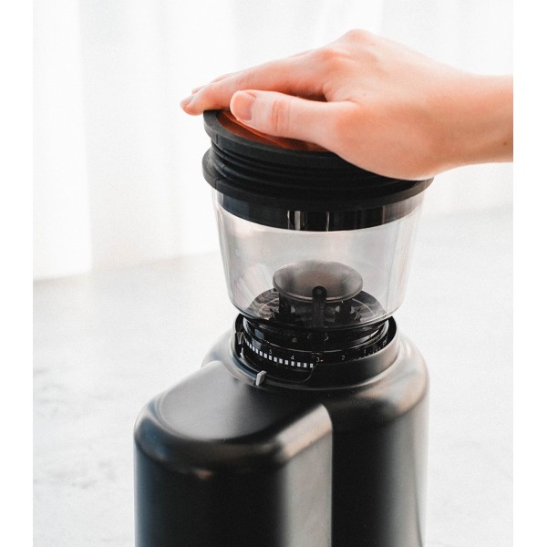 Hario Compact’ın Yeni N modeli, öğütülmüş kahvenin hazneye yapışmasını önleyen anti-statik sistemle donatılmıştır. Kapağındaki pompalı mekanizmayı kullanarak tüm öğütülmüş kahveyi doğrudan alt hazneye aktararak çekirdek değişimlerinde oluşabilecek kalıntıları en aza indirebilirsiniz.